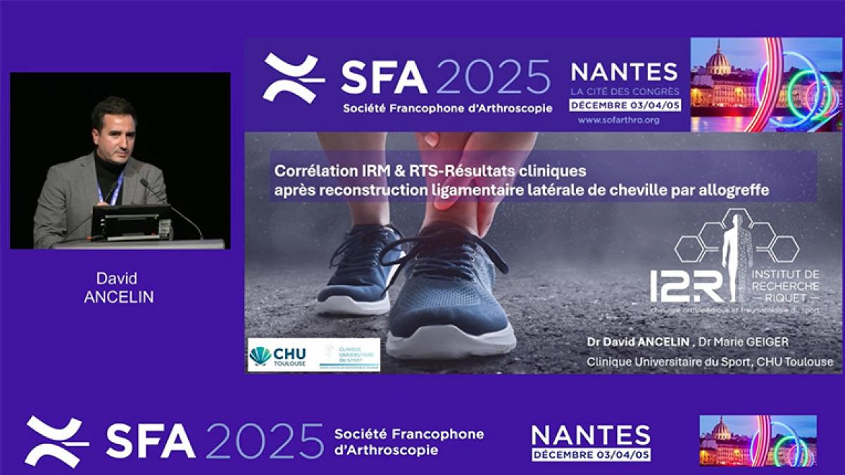 Le Dr David Ancelin et le Dr Marie Geiger partagent leur expérience à travers un travail portant sur la corrélation entre les résultats IRM et les résultats cliniques après reconstruction ligamentaire latérale de cheville par allogreffe.
